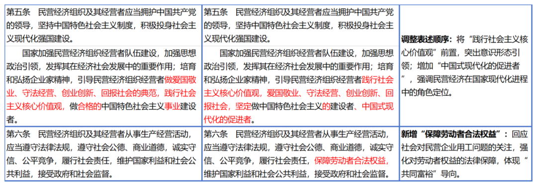 ![]() ▲《民营经济促进法》草案与正式文本表述对比表6