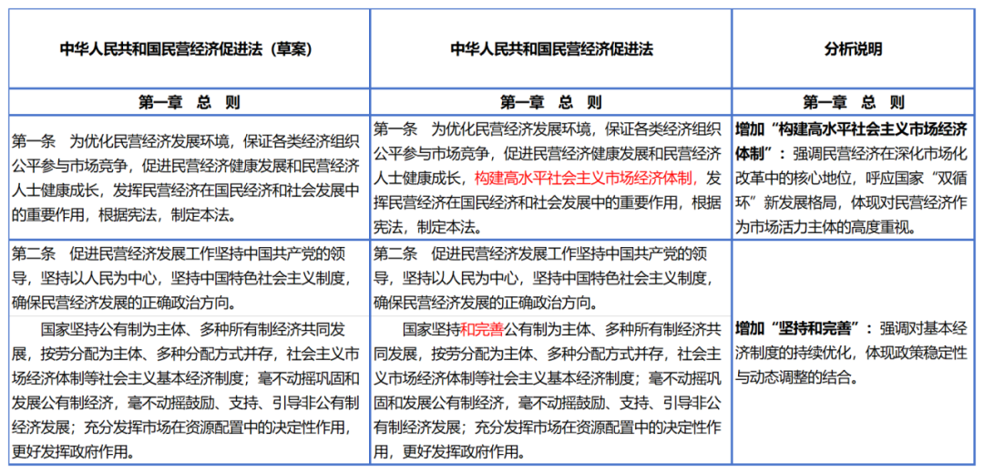 ![]() ▲《民营经济促进法》草案与正式文本表述对比表1