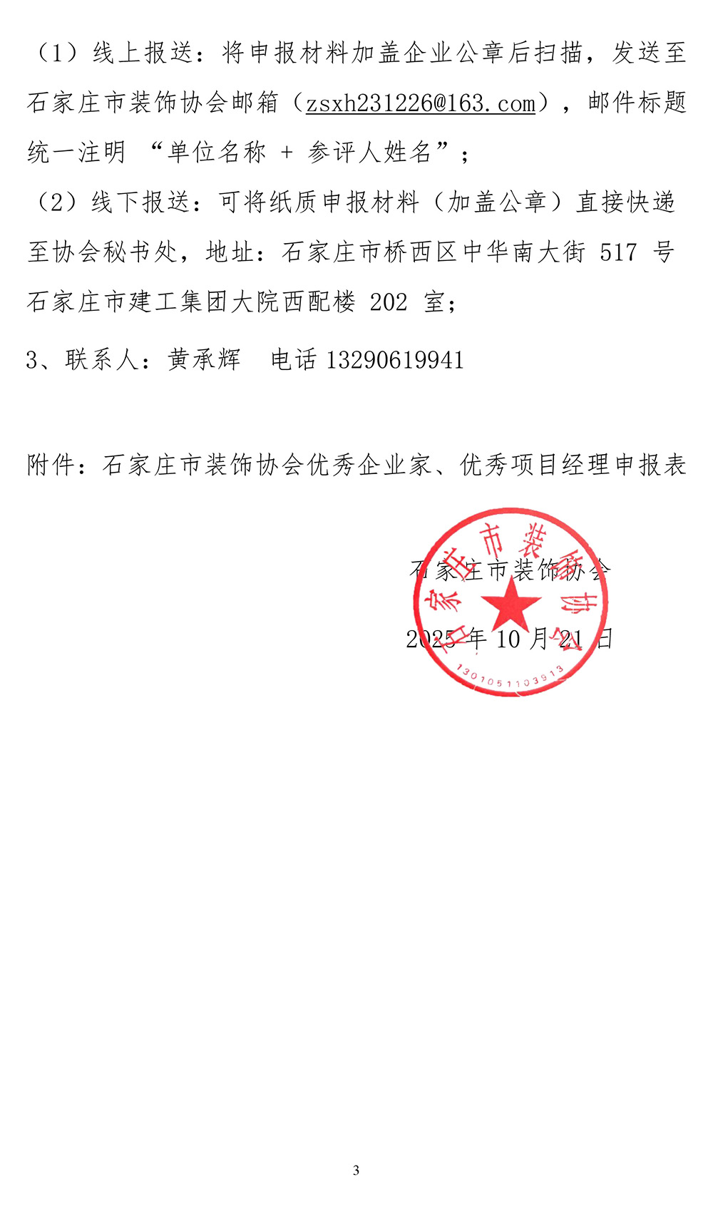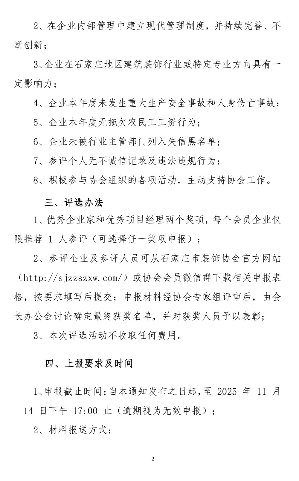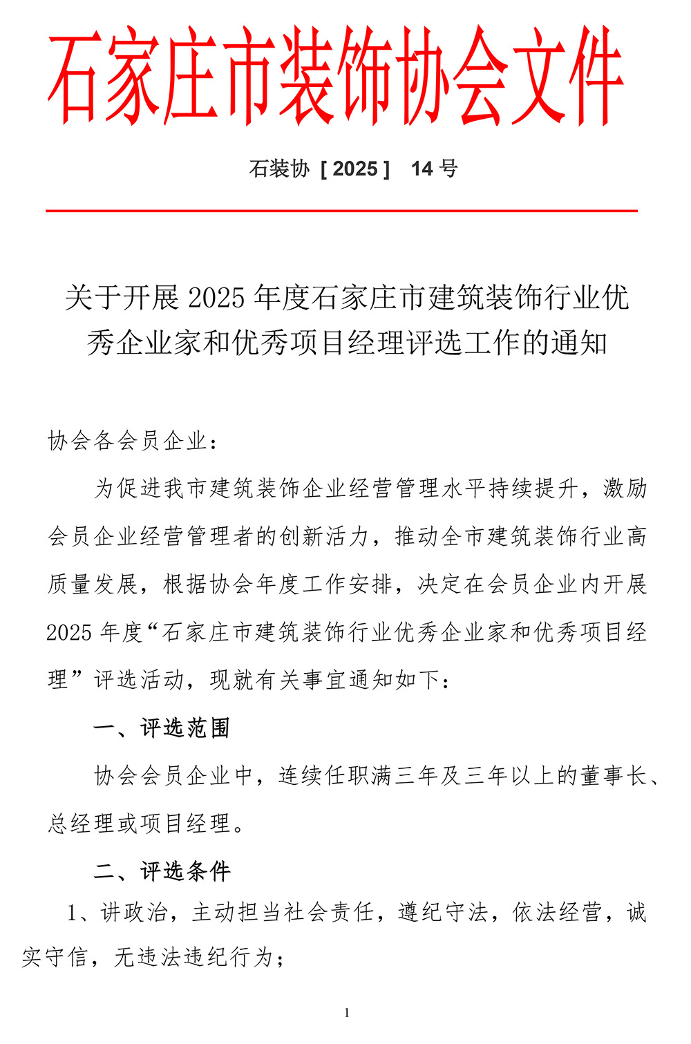 关于开展2025年度石家庄市建筑装饰行业优秀企业家和优秀项目经理评选工作的通知